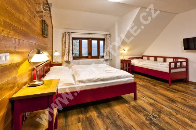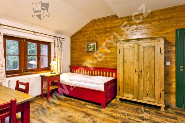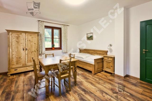 Hotel Na Modravě ist ein stilvolles, neu gebautes Hotel im Böhmerwald. Sie können in Zwei-, Drei- und Vierbettzimmern, eventuell in Familienzimmern mit fünf Betten, die aus zwei selbstständigen Schlafzimmern bestehen, unterkommen. Das Hotel hat insgesamt 56 Betten und unsere Firma wurde als Lieferant des größten Teils der Möbel, der Ausstattung des Restaurants und der Bar ausgewählt. Die Zimmer wurden mit Massivholzmöbeln in verschiedenen Farben eingerichtet.